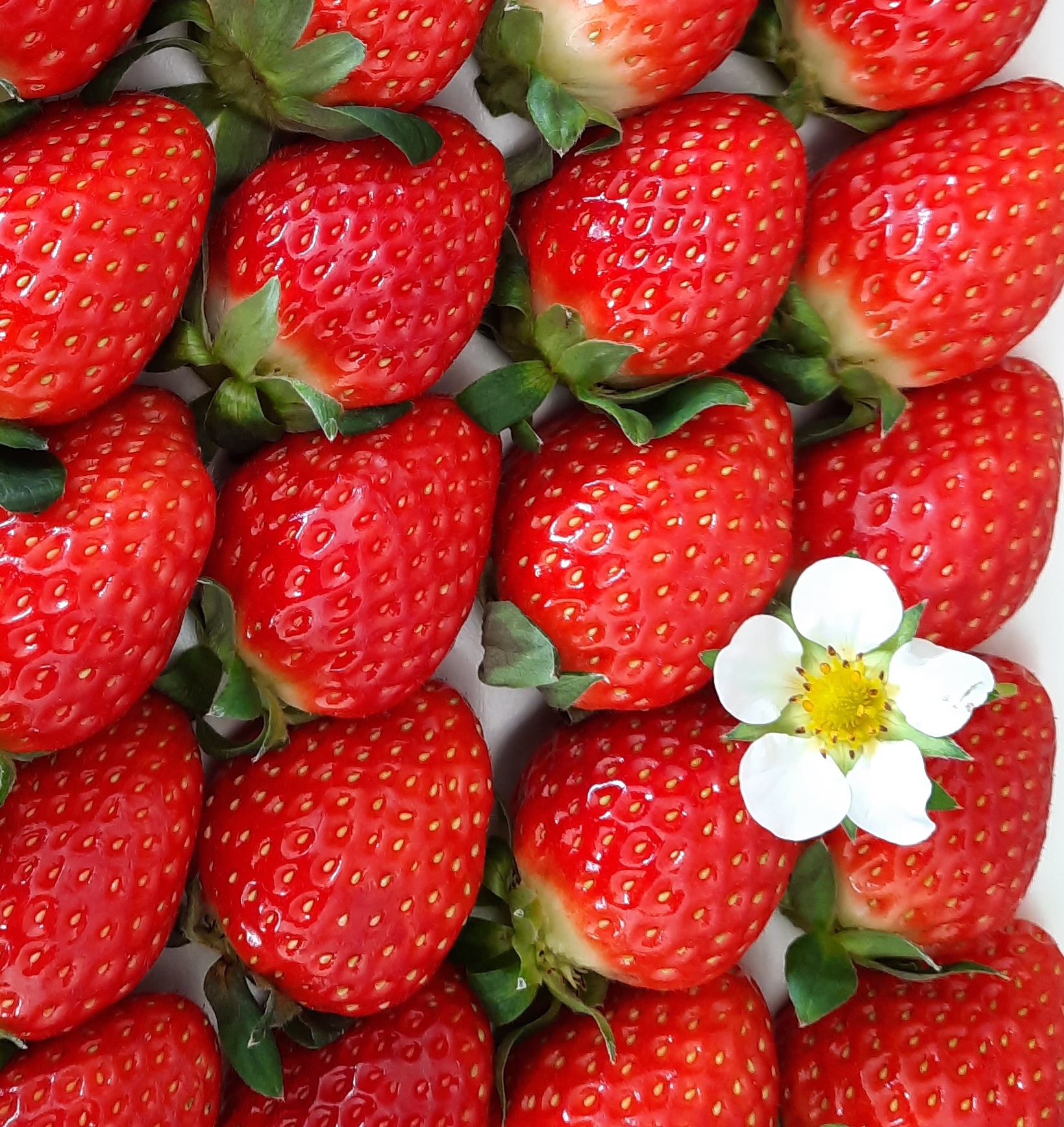딸기에는 라이코펜, 안토시아닌, 비타민 A, B, C, 단백질, 탄수화물, 나이아신, 식이섬유, 칼슘, 나트륨, 칼륨, 인, 철, 아연 등 많은 종류의 효능이 있어요. 보통과 다르게 딸기는 비타민 C(100g당 약 80mg)가 가득하여 하루에 딸기 6~7개를 섭취하면 필요한 비타민 C(100mg)를 섭취할 수 있어요.