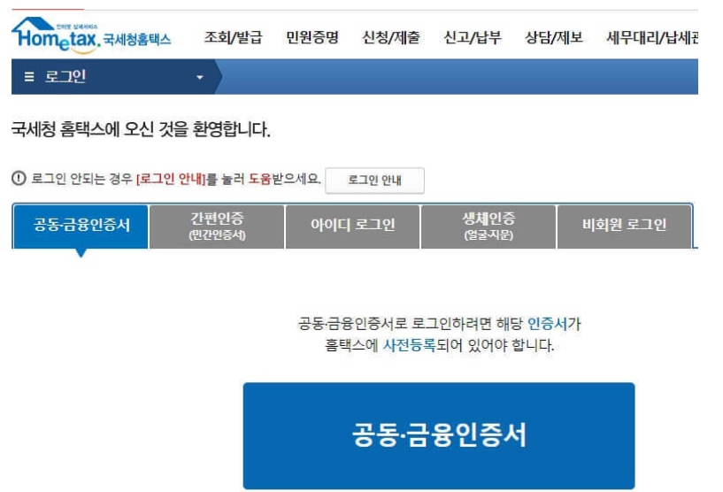 로그인 방법에는 인증서나 간편 인증, 생체인증 등 여러가지로 많이 있으니, 등록한 방법대로 진행하면 간결하게 국세 완납증명서를 인터넷으로 발급하실 수 있고요.