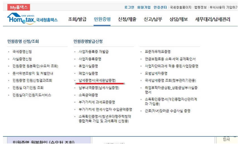 국세완납증명서 인터넷발급 방법 본문