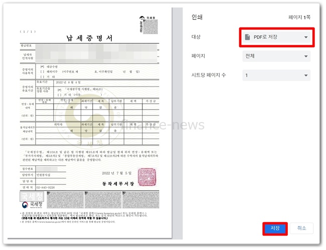 본인 인증하고 로그인을 하면 간단하고 거뜬하게 발급이 된다고 합니다. 당장 처리되는 만큼 프린터기로 출력한 경우 혹은, 아니라면 PDF 파일로 저장해서 금융기관이나 거래처에 이메일로 전송할 수도 있다고 합니다.