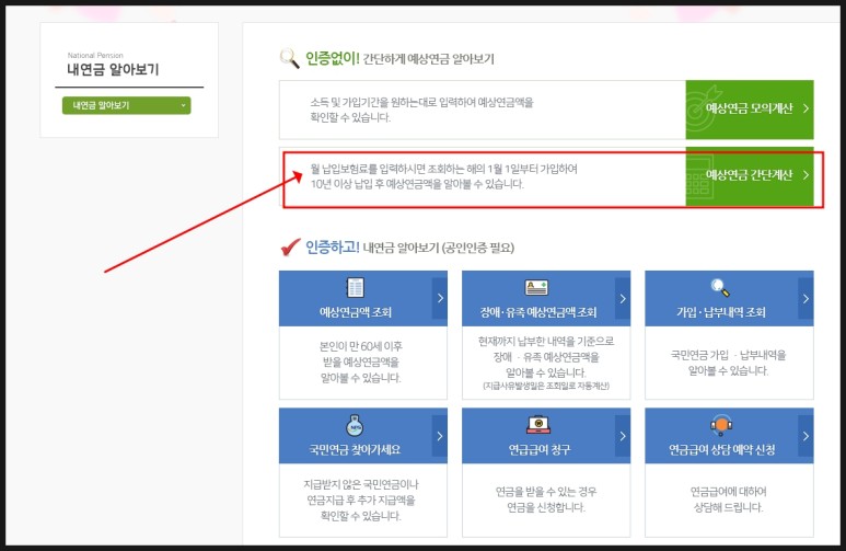그 뒤, 국민연금 예상연가격 조회에 들어가주세요.
