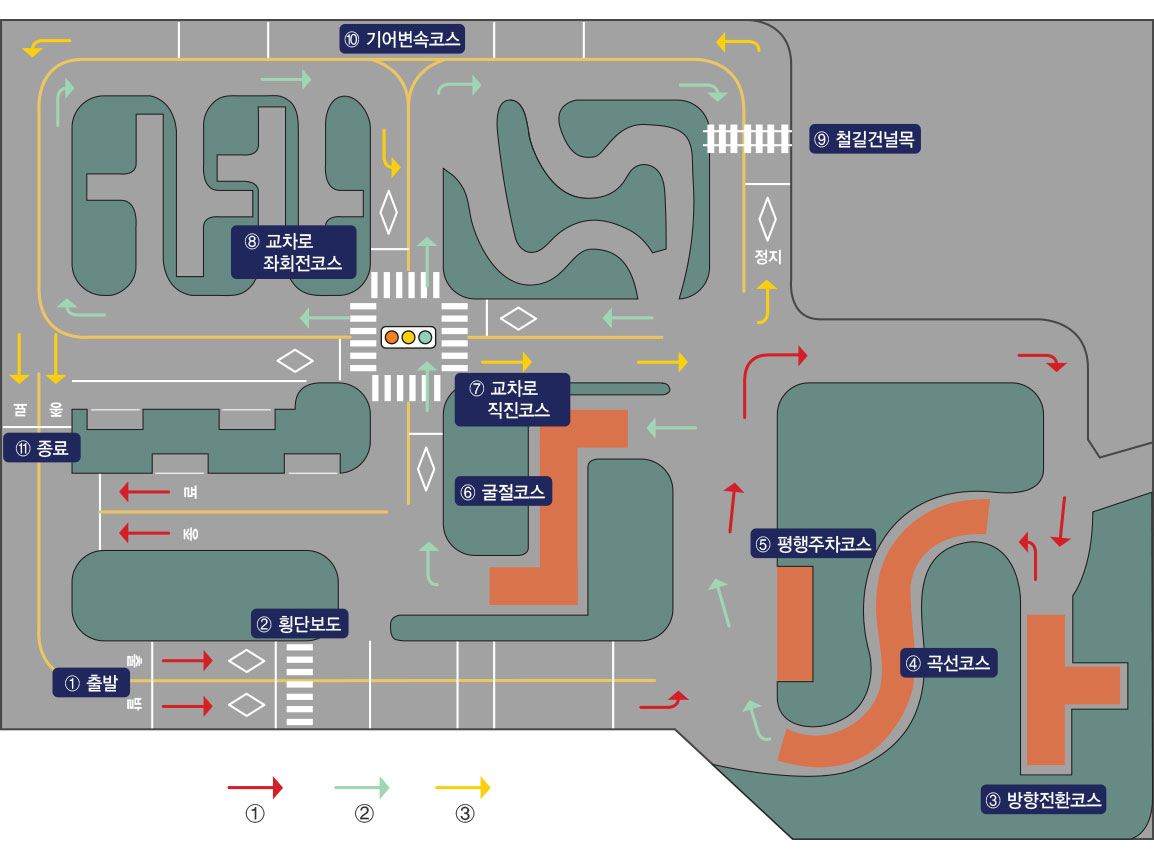 학원에서는 학과교육 이론 3시간과 장내기능교육 운전교육 10시간을 의무 이수해야 학원 자체 교육시험에 응시가 가능해요.