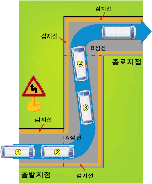 2. 경사로, 굴절, 방향 전환, 기어 변속 코스나 평행 주차 코스 등 하나라도 이행하지 않았을 때