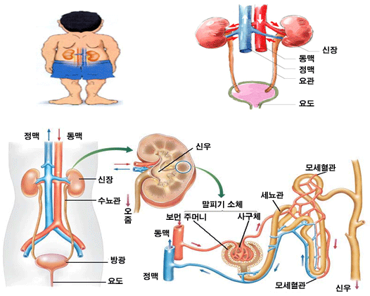건강한 사람은 소변색이 투명하면서 연한 노란색을 띄지만, 신장이 심해지면 소변색이 붉은빛을 띄거나 거품이 생기는 단백뇨가 발생할수 있고요. 또한 급성 신장염으로 말미암아 소변에 혈액이 섞여 나오는 경우도 있고요. 단, 혈뇨는 신장이 안좋으면 나타나는 증상이기도 하지만 방광염 또는 요로결석으로 인하여 발생하는 경우도 있으니 명료한 검사와 진단이 필요하답니다.