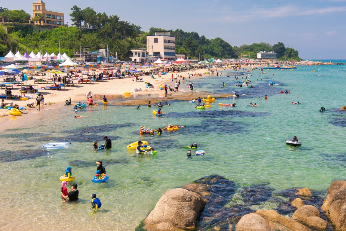 다음으로는 상족암 해수욕장을 소개합니다. 이곳은 아름다운 자연 경관이 펼쳐진 곳으로, 특히 바위들이 만들어내는 독특한 풍경이 인상적입니다. 이 해수욕장은 바다에 가장 가까운 곳에서 수영을 즐길 수 있을 뿐 아니라, 바위 위에 앉아 여유롭게 시간을 보낼 수 있습니다.